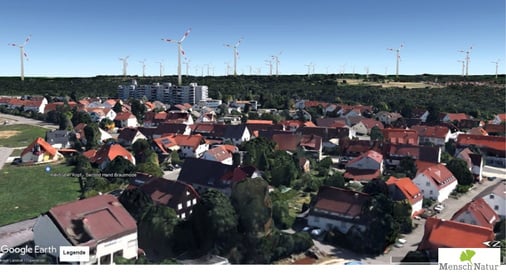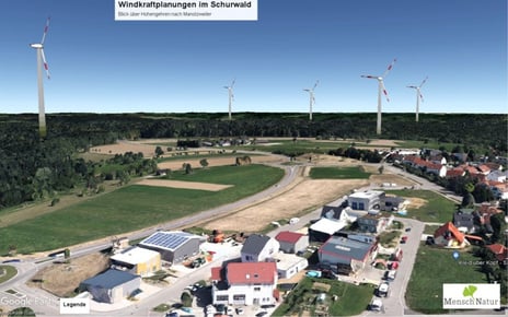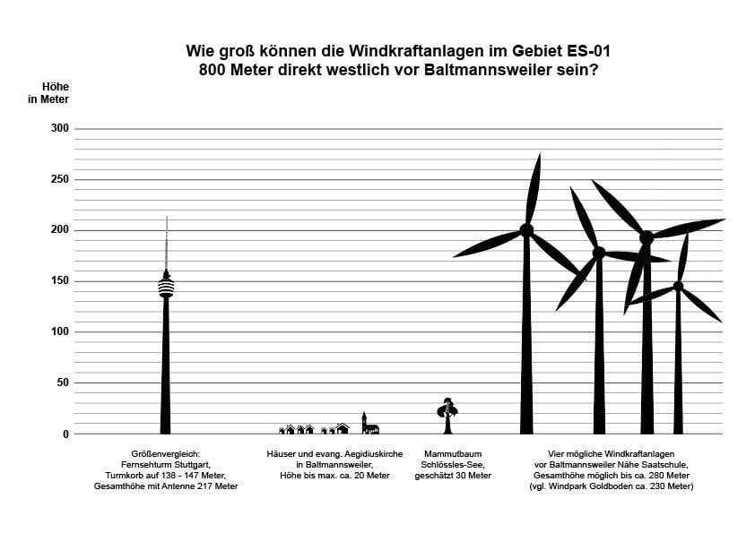 Machen Sie sich Ihr eigenes Bild wie hoch die bis zu 300 Meter hohen Windräder nur 800 - 1.000 Meter vor Baltmannsweiler im Vergleich zu anderen Höhen wirken könnten: